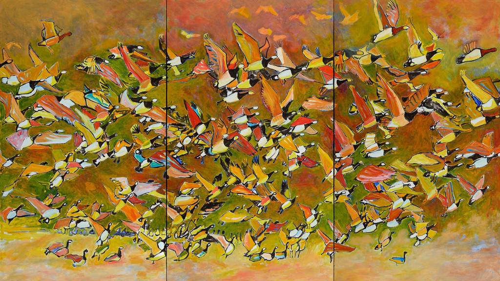 Ihre Inspiration kommt oft von Zugvögeln, der Natur, Farben, Formen und Stimmungen, vermischt mit ihrem inneren Universum. Stille, Ruhe, Bewegung, Licht, Freude und Energie verbreiten sich mit den Zugvögeln rund um die Erde. Kleine Ringe im Wasser verbinden die Ozeane wie Sonne und Mond am Himmel. Sonnenaufgänge verbreiten das Licht, und Sonnenuntergänge spiegeln sich in der Wasseroberfläche, bevor die Dunkelheit hereinbricht und das Licht der Sterne verstärkt.